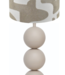 Mooie Tafellamp met bollen in de kleur beige/taupe hier gecombineerd met een maatwerk kap van ø 30cm en hoogte 25cm, door het hogere model kap krijgt de lamp nog meer uitstraling, natuurlijk kunnen we de voet ook combineren met andere kappen op kleuren.