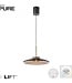 Deze zeer stijlvolle hanglamp Pure Moon met Italiaans smoke glas . Beschikt over de techniek om de lampen in hoogte aan te passen door een zeer technisch systeem boven in de bak , via de meegeleverde afstandbediening is de hoogte en lichtkleur /sterkte aanpasbaar.