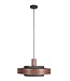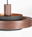 Geef je interieur een warme en stijlvolle uitstraling met deze elegante hanglamp. De combinatie van houtlook, zwarte details en een goudkleurige binnenzijde zorgt voor een sfeervol lichteffect dat perfect past boven de eettafel of in de woonkamer.