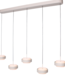 Fraaie nieuwe 5lichts hanglamp in de trendy kleur zand beige met wit, door het katrol systeem kan de lamp eenvoudig op en neer gependeld worden, ze kunnen strak op 1 lijn of speel in hoogte verschillen, de kleur past mooi in een Scandinavisch of Japandi interieur.