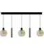 Prachtige hanglamp 3 lichts ronde smoke fume glazen met 2 runs sfeervol glas zorgt voor rondom gezellig licht de zwarte buis spots zorgen voor functioneel licht op tafel.