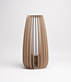 Deze handgemaakte naturel lamp met mat opalen binnenkant voor een mooi diffuus licht wordt met de hand vervaardigd in Nederland, is een fraaie eyecatcher. Hij is perfect om een hoekje op een sfeervolle manier te verlichten. De handgemaakte houten lamellen laten het licht op een subtiele wijze door. Voor het mooiste effect kun je een 3 standen E27 lamp kiezen.