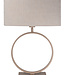 De voet is gemaakt van metaal in een beigekleurige tint; de kap van linnen stof in bijpassende kleur zorgt voor een diffuse en zachte lichtverdeling. Hierdoor ontstaat een warme, gedempte gloed, perfect voor rustige avonden, zachte sfeer naast de bank of in slaapkamers.