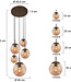 Ontdek de stijlvolle videlamp Bollique in trendy cacao kleur, een prachtige toevoeging aan elk eigentijds interieur. Met vijf amber gold, dichte glazen bollen in verschillende formaten, geeft deze lamp een subtiel en modern accent aan jouw ruimte. De variatie in afmetingen - met een bol van 30 cm, 25 cm, 20 cm en twee bollen van 15 cm doorsnede - creëert een harmonieus samenspel van licht en vorm.