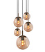 Vide Hanglamp bollique rond plaat 41cm cacao 5 glazen bollen amber